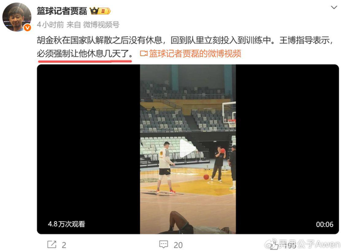球王会官方-最靠谱的国手!刚打完世预赛就随队训练,球迷:比周琦沉稳多了|国家队|胡金秋|大秋|中国男篮|王哲林_新浪体育_新浪新闻
